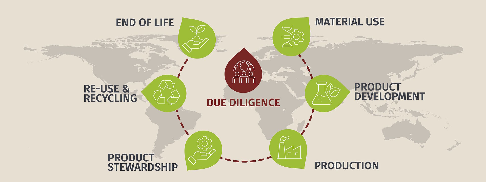 From material and chemical requirements across all areas of production to the use and disposal of your products, we offer specific solutions for every stage of your product supply chain. Our Sustainability Services Team also provides individual advice on strategy, due diligence and sustainability performance – please ask us for personalised support!